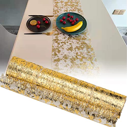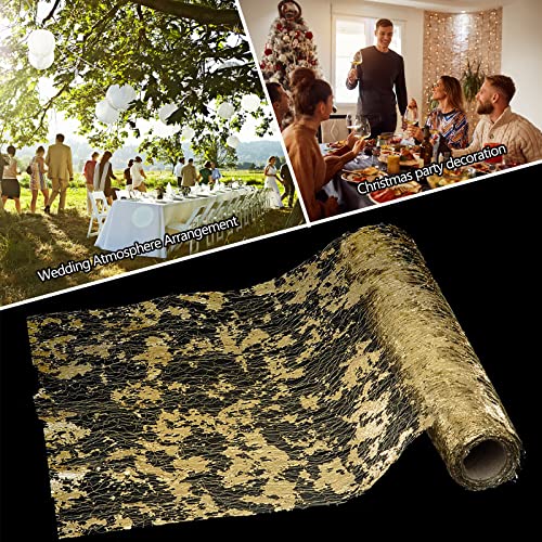 IYinJuan Runner da Tavola d'oro, Runner Tavola in Metallo Dorato Fiocco in Pizzo, da Utilizzare Come Runner da Tavola o Fascia, per Decorazioni da Tavolo Sedia da Sposa, Dinner Party, 5 M x 28 cm
