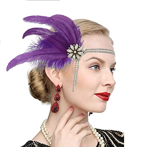 IYOU 1920s Piuma Flapper Copricapo Viola Cristallo Gatsby Fascia Prom Accessori per capelli da sposa per le donne