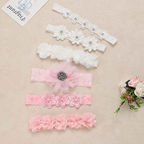 IYOU Bambine Fascia per capelli insieme a gros-grain Nastro Floreale Rosa Cerchietto per capelli Festa Nozze Fotografia Accessori per capelli per Bambini (Confezione da 6) (Bianco)