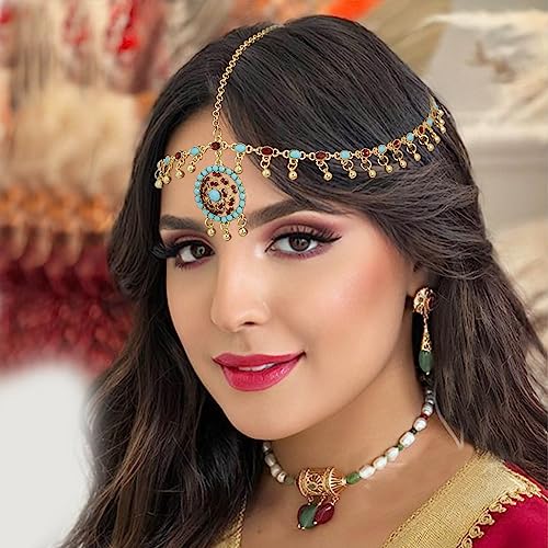 IYOU Catena di Testa Boho Vintage Copricapo con Nappa di Perline Oro Accessori per capelli del Festival del Costume di danza del Ventre per Donne