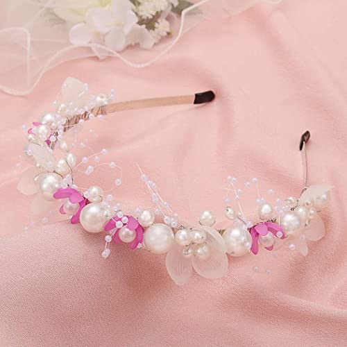 IYOU Cerchietti da Sposa di Perle Fasce per Capelli da Sposa Fiore Viola Accessori per Capelli per Ragazze di Fiori per Comunione Compleanno Bambini