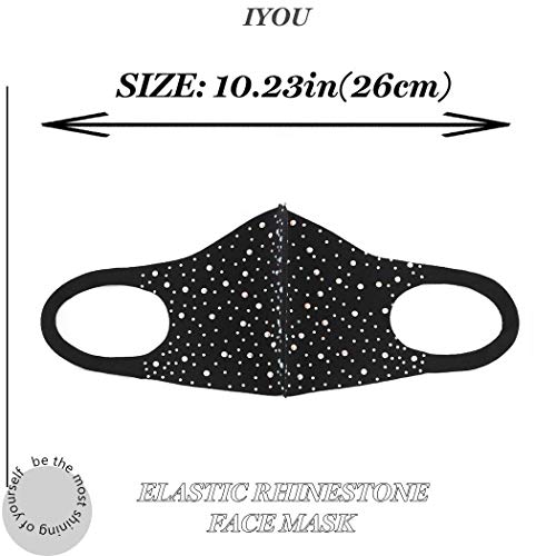 IYOU - Copri bocca in cristallo glitterato nero riutilizzabile per maschere per il viso in maschera con strass luccicanti, ideale per donne e ragazze