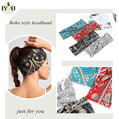 IYOU IYOU Fasce per capelli Boho Yoga Fascia elastica Fasce per capelli sportive Fasce per capelli neri per donne e ragazze (confezione da 4)