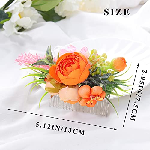 IYOU Fiore Nozze Pettine Arancia Floreale Copricapo Artificiale nuziale Ballo Studentesco Spiaggia Accessori per Capelli per Donne e Ragazze Nozze Lati Pettini