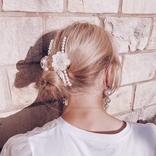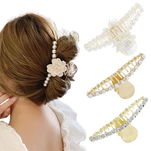 IYOU Francese Metallo Artiglio dei Capelli Oro Strass Artiglio dei capelli clip Perla Molletta Larga Antiscivolo All'aperto Capelli Mascella Clip per Donne e Ragazze (3 Pezzi)