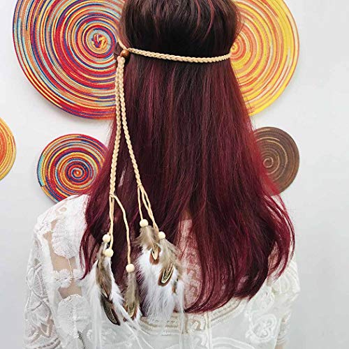 IYOU Indiano Piuma Fascia per Capelli Hippie Boho Copricapo Anni '20 Catena Della Testa Pezzo di Capelli Gioielleria Accessori Copricapo Mascherata per Donne e Ragazze