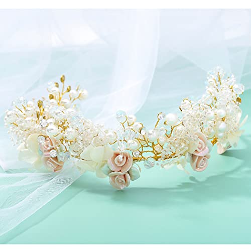 IYOU Santa Comunione Accessori per Capelli Oro Fiore Copricapo Boho Perline Vite per Capelli Compleanno Principessa Fascia per Capelli per Ragazze dei Fiori