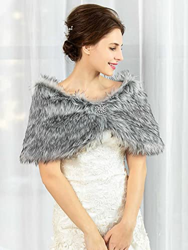 IYOU Sciarpe e avvolgicalze da donna in pelliccia sintetica anni '20 sposa grigio pelliccia stole sciarpa con strass spilla invernale per donna e ragazza, grigio., L