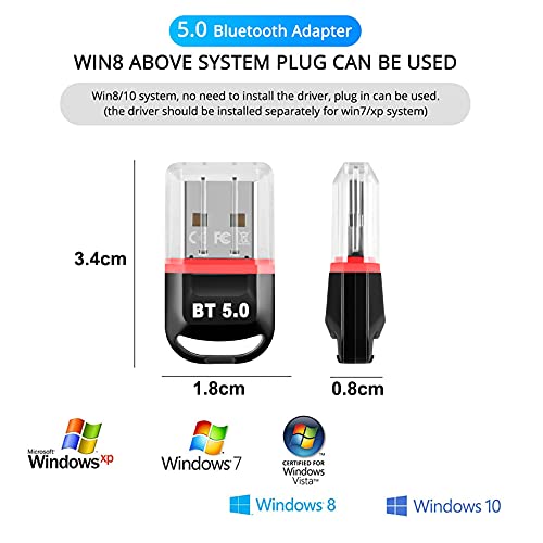 Bluetooth 5.0/ 20M Señal Estable: El último 5.0 Bluetooth usb en 2020, admite la transmisión en modo EDR Bluetooth de hasta 3 MBit/s, la transmisión más rápida de datos y audio. Compatible con versiones anteriores de Bluetooth v4.0/ 3.0/ 2.1/ 2.0/ 1.1. La tecnología 4.0 BLE, bajo consumo de energía, anti-interferencia, proporciona una señal fuerte, reduce la pérdida de velocidad de transmisión de la banda ancha de banda 2.4G.