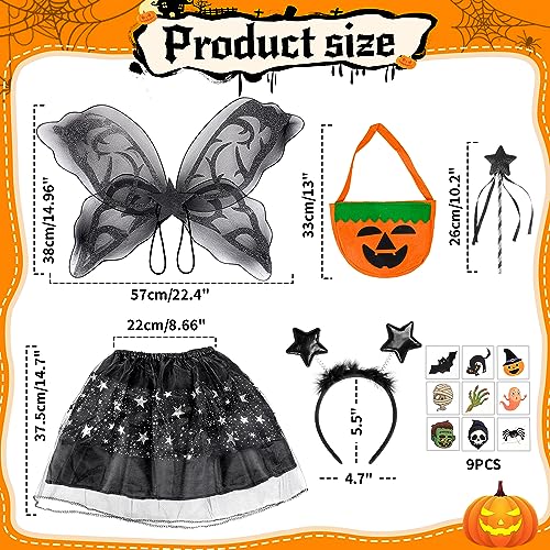IZoeL Costume Halloween Bambina Costume Carnevale Set di Ali Fata, Ali Farfalla Tutu Tatuaggi Halloween Zucca Sacchetti Fascia Bacchette di Stella, per Costume Halloween Bambino Costume Fata