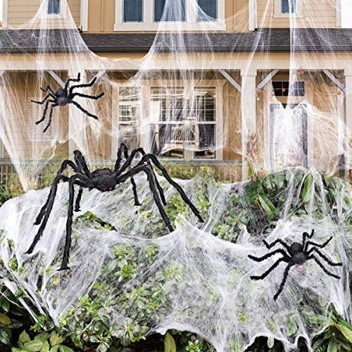 Giant Value Pack Decorazione: 1 ragno gigante 6.6ft, 2 ragni spaventosi da 30inch, 30 mini ragni, 40g di ragnatela elasticizzata (copertura di 250 piedi quadrati), sufficienti per decorazioni a tema spaventose e inquietanti!