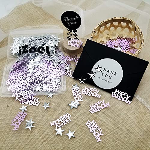 IZoeL 30g Rosa Compleanno Coriandoli, 10g Argento Stella Coriandoli Sequin, 20g Happy Birthday Coriandoli, Per La Festa Compleanno Anniversario Matrimonio Decorazione Della Tavola