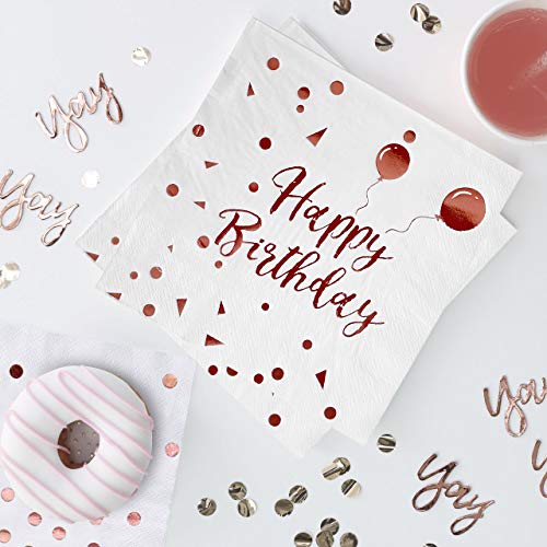 IZoeL Tovaglioli Compleanno Bianca Carta, 50 Oro Rosa HAPPY BIRTHDAY Palloncini, 3 Strati, adulti bambini Tovaglioli di Carta da Festa
