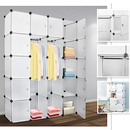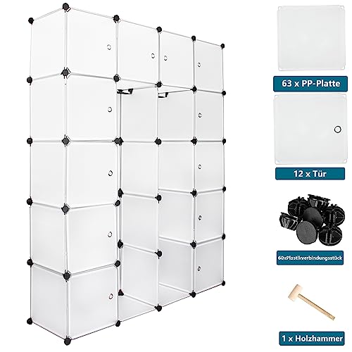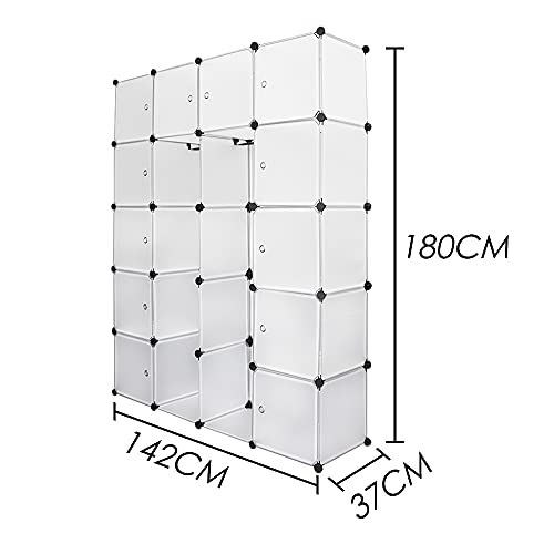 Izrielar Armadio con sistema di scaffalatura a 20 cubi, sistema modulare fai da te con ante, salvaspazio, sistema di scaffali espandibili, 180 x 142 x 37 cm, bianco