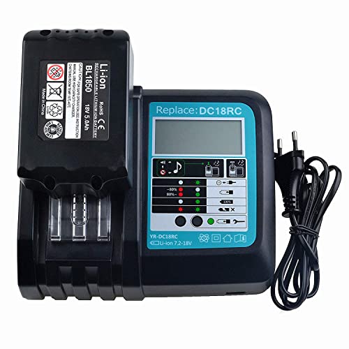 J-Conel BL1850B Batteria 18V 5.0Ah con Caricatore DC18RC di Ricambio per Makita 18V Batteria BL1860B BL1860 BL1850 BL1840B LXT-400
