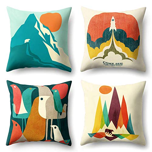 J-MOOSE 4 Pack Sunrise Printed Federa per divani Decorativo Cotone Biancheria Gettare Cuscino Caso Cuscino 45x45 cm(Sole)