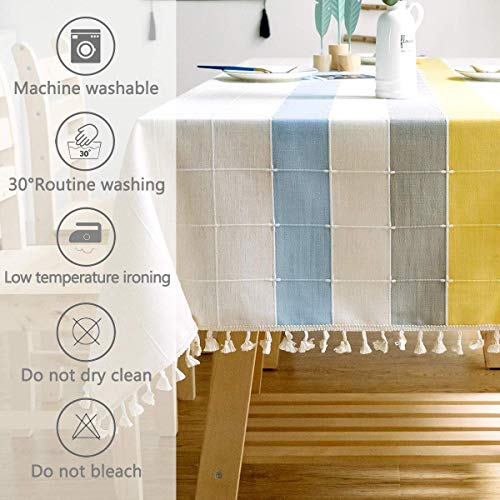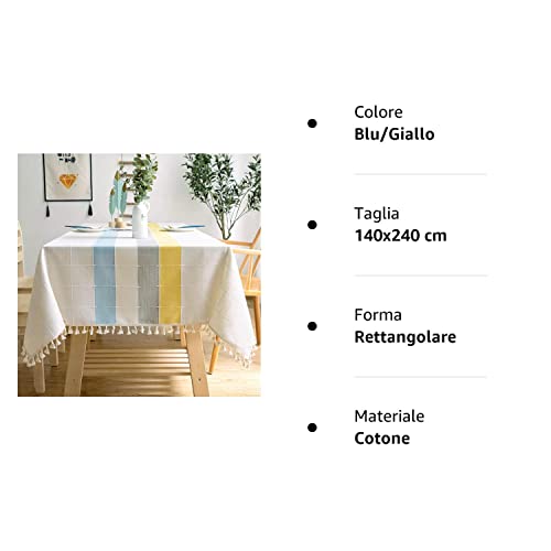 J-MOOSE Tovaglia Moderna Nappa Cotone Lino Tovaglie Decorazione della Tavola da Pranzo Cucina Lavabile (140x240cm, Blue/Yellow)