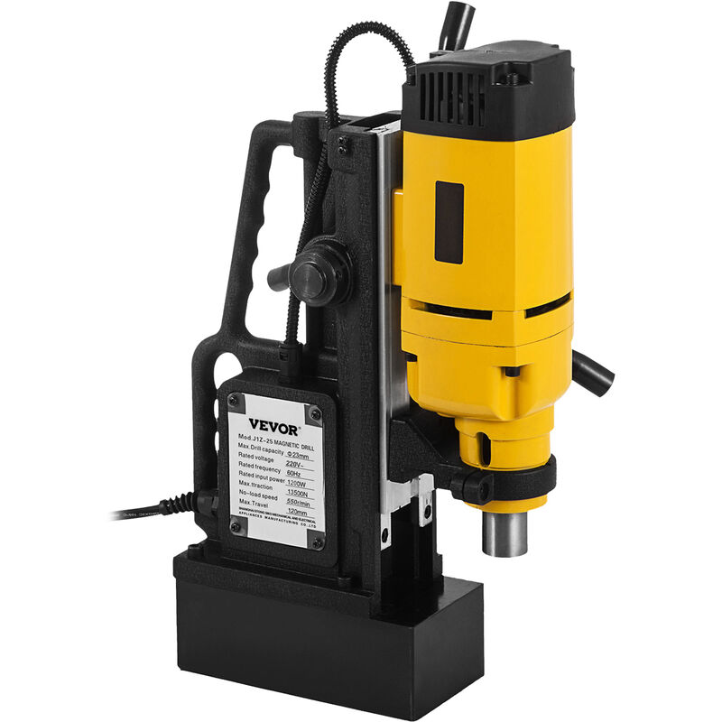 Trapano Magnetico 550 giri/min, 1200 W e 4,7 pollici di distanza Questa classe di utensili per trapani a colonna è stata progettata e progettata specificamente per velocità e precisione. La sua solida adesione magnetica è 13500N, che può eseguire l'operazione multidirezionale. È uno strumento essenziale per l'esecuzione di lavori industriali e di fabbricazione dell'acciaio per impieghi gravosi. Prestazioni superiori Forza magnetica 13500N Velocità a vuoto e sistema di raffreddamento Design intuitivo Caratteristiche & Dettagli Prestazioni Superiori: il nostro trapano a colonna portatile genera una potenza eccezionalmente potente grazie al suo motore in rame da 1200 W. È in grado di perforare i materiali più duri a 550 giri/min. Diametro massimo del carotaggio: 0,9 pollici / 23 mm;
