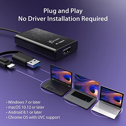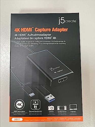 J5create 4K HDMI Video Capture Card, DSLR Cam Link, Game Capture Adapter per giochi in diretta, broadcasting, streaming, videoconferenza | Supporto 4K30, 2K60, 1080p120 (JVA11)