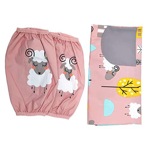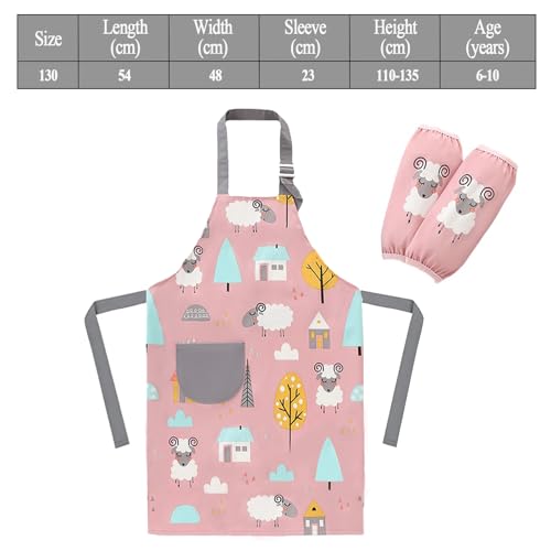 JaAoyoo Grembiule da cucina per bambini, impermeabile, regolabile, per la scuola, con tasca e maniche, rosa, pecora, 6-10 anni