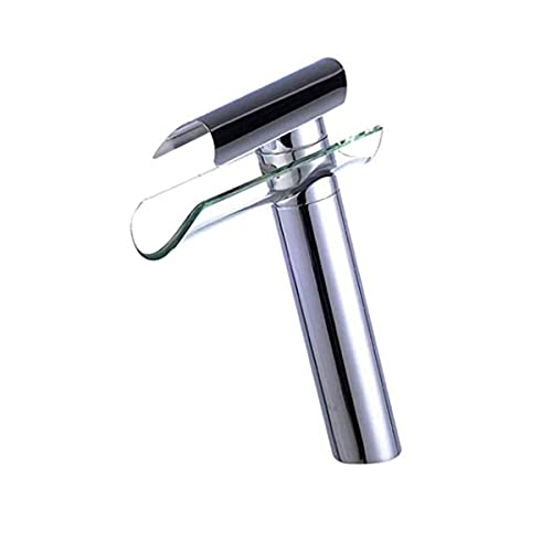 JABL Rubinetto per lavabo a Cascata Cromato Rubinetto per Miscelatore monocomando Rubinetto per lavabo Alto per Bagno in Ottone con beccuccio in Vetro