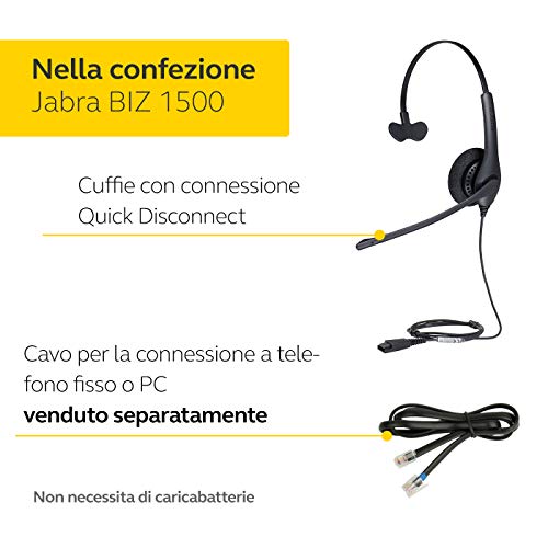 Contenuto della spedizione: Cuffie Jabra Biz 1500 Quick Disconnect On-Ear Mono, cavo a sgancio rapido (QD) - Peso: 88g - Colore: nero