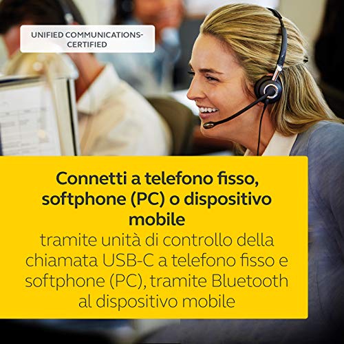 Jabra Biz 2400 II USB-A BT Unified Communication Cuffie Stereo On-Ear, Cuffie con Cavo e Cancellazione del Rumore Ottimizzate per le Unified Communication, Unità di Controllo Vocale HD e Bluetooth