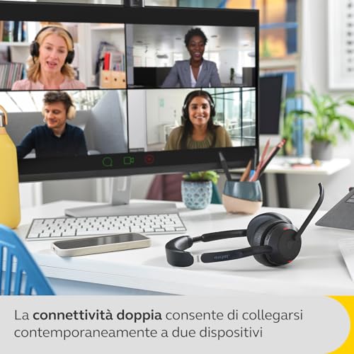 Jabra Evolve2 55 Cuffie Wireless Stereo con tecnologia Jabra Air Comfort, USB-A dongle, Tutte le piattaforme, Stereo, Senza Supporto