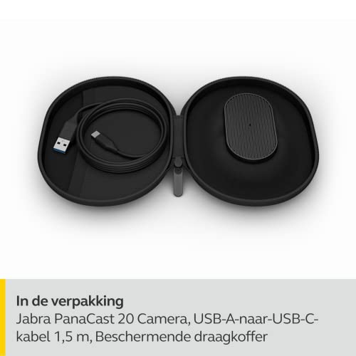 Contenuto della spedizione: 1 videocamera Jabra PanaCast 20, cavo adattatore da USB-A a USB-C 1.5 m, 1 custodia protettiva, peso: 100 g