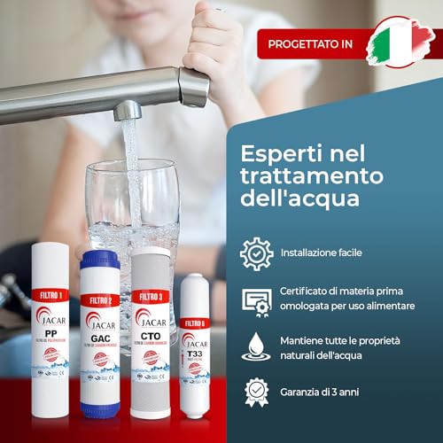 JACAR | Kit filtri per osmosi inversa 5 stadi | impianto osmosi acquario | filtri depuratori d'acqua | filtri osmosi per uso domestico | depuratore acqua osmosi inversa | ricambi osmosi inversa