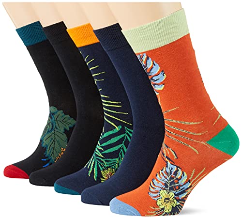 JACK&JONES ACCESSORIES JACBRAC Sock 5 Pack Calzini, Black/Detail: Burnt Ore - Navy Blazer - Black - Black, Taglia Unica Uomo