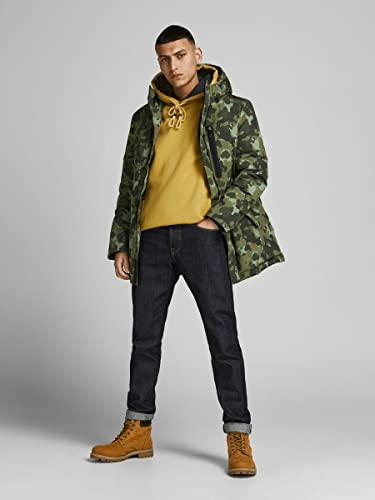 JACK & JONES Felpa Poul Uomo Giallo ocra con Cappuccio e Maxi Stampa sul Retro e sulla Manica L