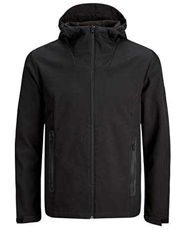 JACK & JONES - Giacca da Uomo in Softshell, con Cappuccio Nero S