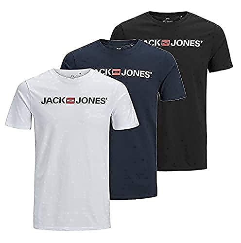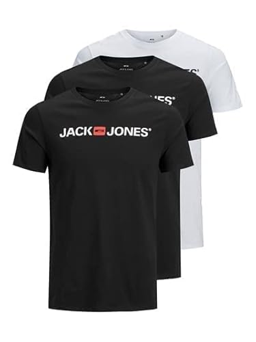 JACK & JONES JJECORP Logo Tee SS Crew Neck 3PK MP T-Shirt, Confezione da 3 (1 Blazer, 1 Bianco, 1 Nero), XL Uomo