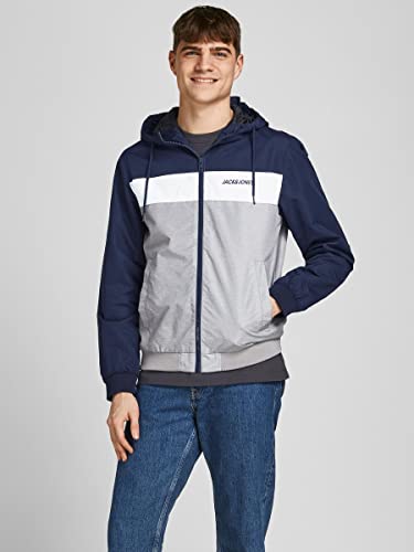 Jack & Jones Jjerush Blocking Hood Bomber Giacca, Blu (Navy), L Uomo