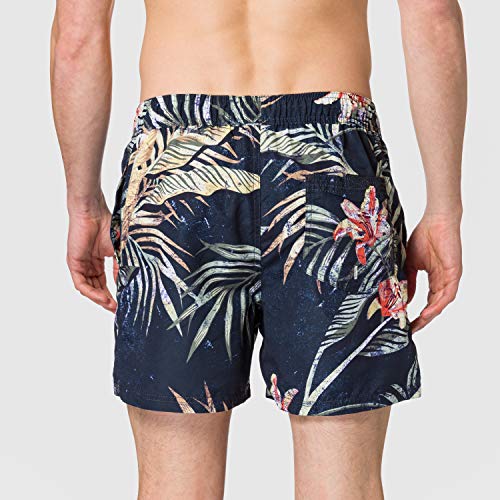Costume da bagno da uomo, elastico in vita con coulisse, motivo floreale colorato, tasca posteriore applicata sulla destra