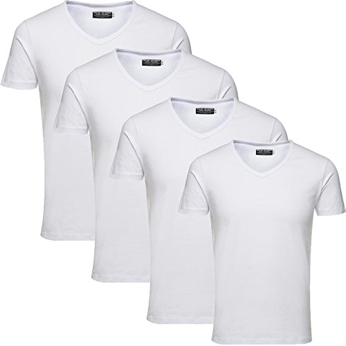Jack & Jones - Maglietta da uomo Basic con scollo a V, 4 pz, taglia M, colore: Bianco