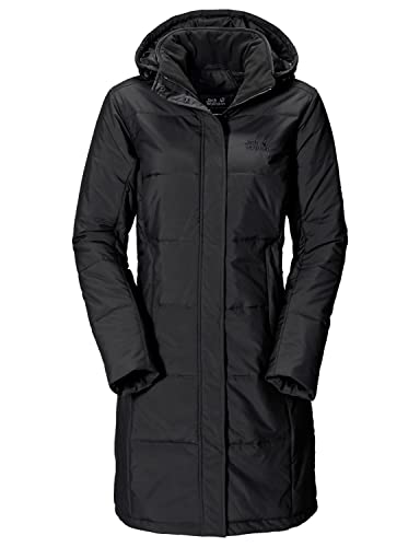 Pratico contenuto della confezione - Jack Wolfskin Iceguard Coat, cappotto da donna al ginocchio, impermeabile, antivento, traspirante, cappuccio rimovibile, colore: nero, taglia: XXL, numero articolo: 1201222