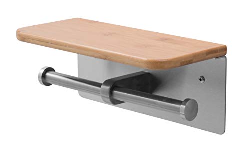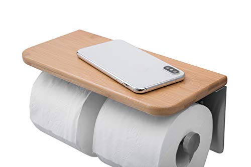 JackCubeDesign Doppio supporto per carta igienica con montaggio a parete in acciaio inox Porta doppio tessuto con vassoio per ripiano in bambù per bagno - MK428B