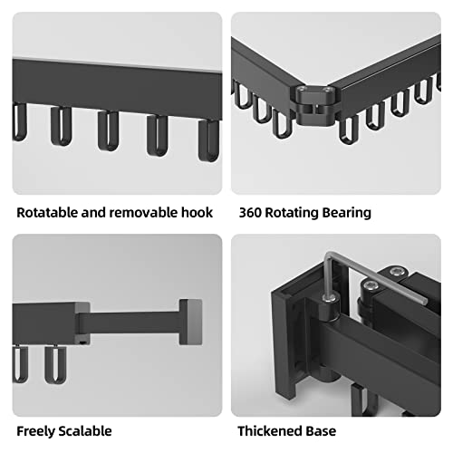 Design pratico: questo stendibiancheria pieghevole ha un gancio antivento, il gancio può essere ruotato liberamente di 360° e il gancio può anche essere spostato. Rotazione a 360° tra 2 aste appendiabiti, è possibile regolare liberamente la tenuta con una chiave a brugola per adattarla ai piccoli angoli.