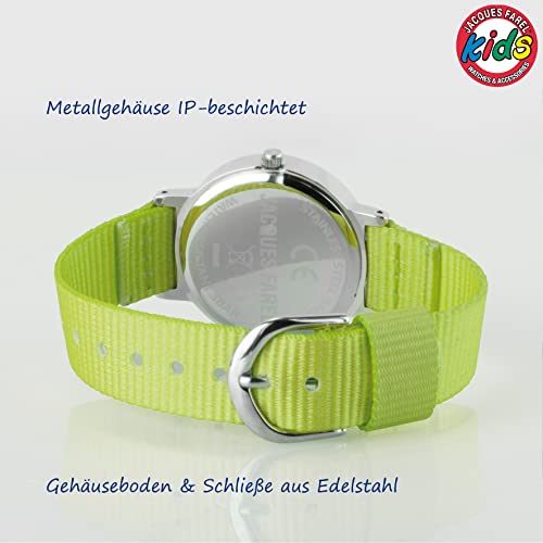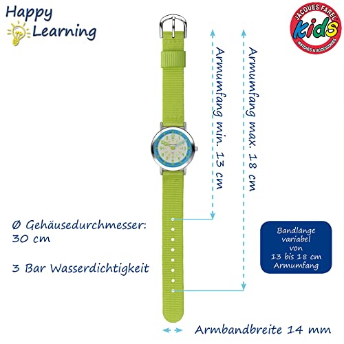 Jacques Farel, Happy Learning orologio da polso per bambini, analogico, al quarzo, in metallo, con cinturino in tessuto KOP 05