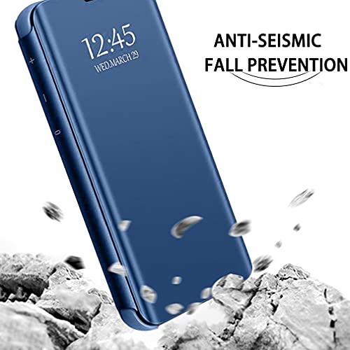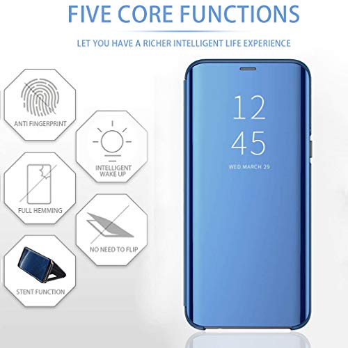 Jacyren Custodia a libro per Samsung Galaxy S7 Edge, in pelle, a specchio, per S7, rigida, 360 °, in PC traslucido, con funzione leggio, colore: blu