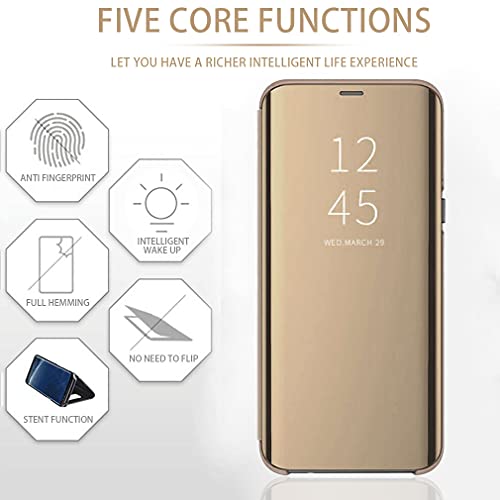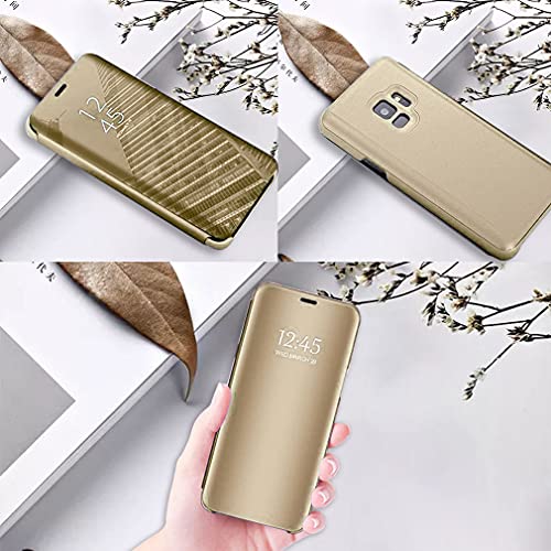 Jacyren Custodia a libro per Samsung Galaxy A32 5G, in pelle, a specchio, 360°, trasparente, con funzione leggio, A32 (oro)