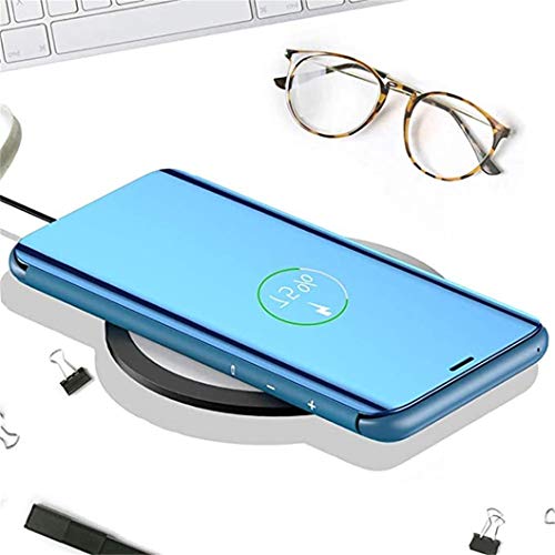 Custodia per Samsung Galaxy A32 con funzione di design: custodia per telefono con specchio e custodia in pelle per Galaxy A32. L'uso della custodia non è in alcun conflitto con la pellicola protettiva temperata. Quando è accesa, si può leggere il display senza aprire la linguetta attraverso lo specchio. Altrimenti il coperchio può essere utilizzato anche come specchio per il trucco.