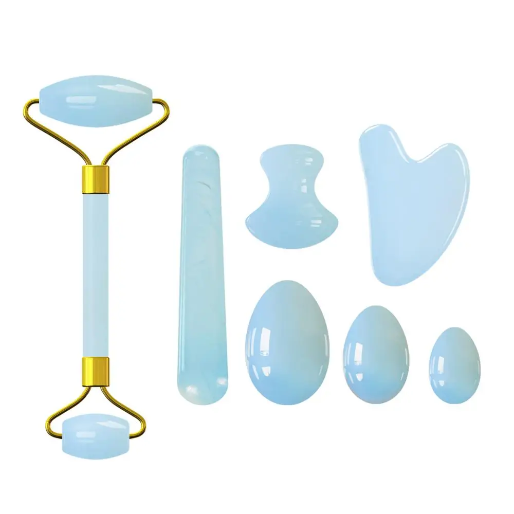 Jade Massage Roller Set Gouache Scraper Natural Stone Opal Quartz Guasha Board Yoni Egg Face Roller Massager