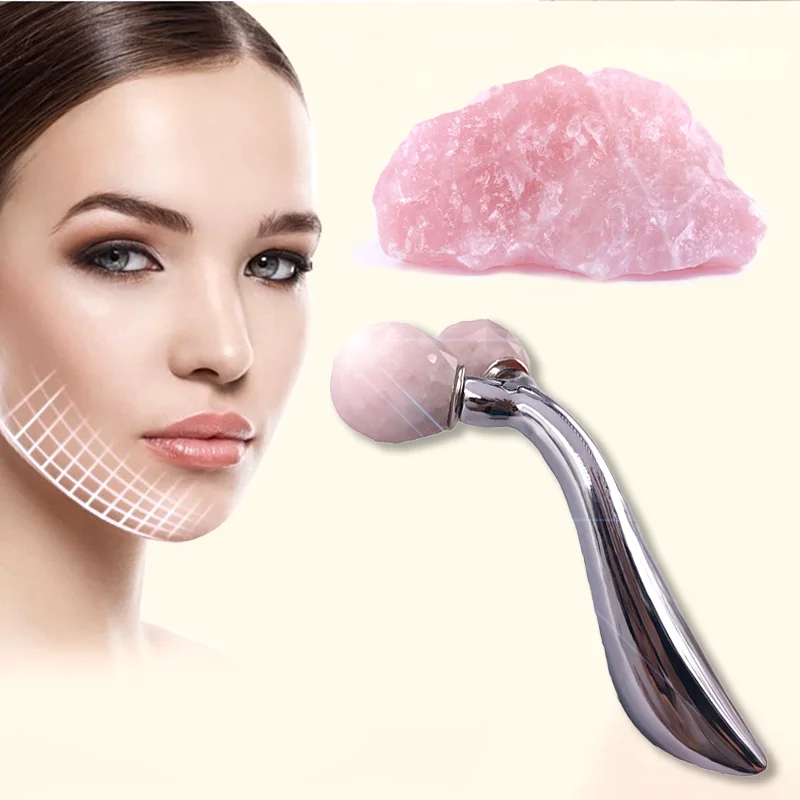 3D Jade Roller, Facial Kneading Massager, Natural Rose Quartz Balls for Face Lifting Body Slimming