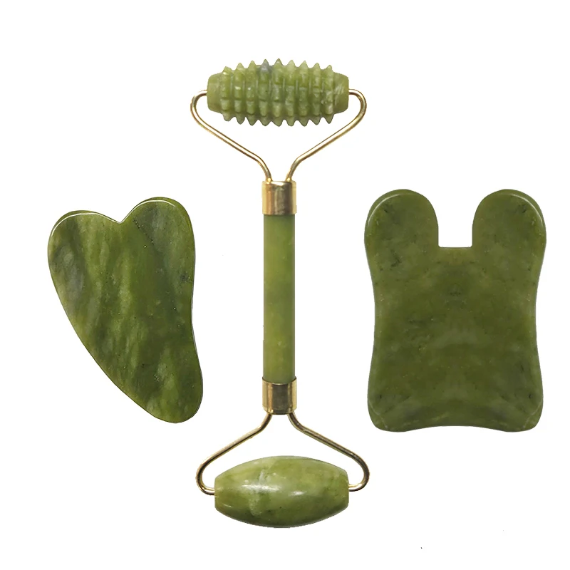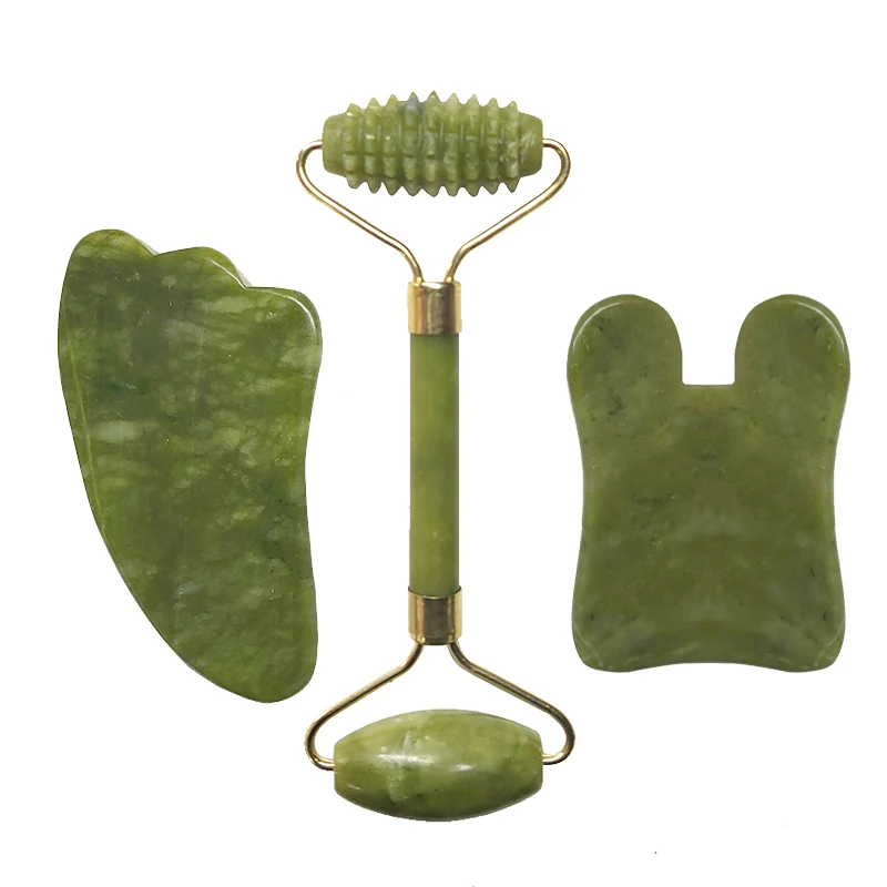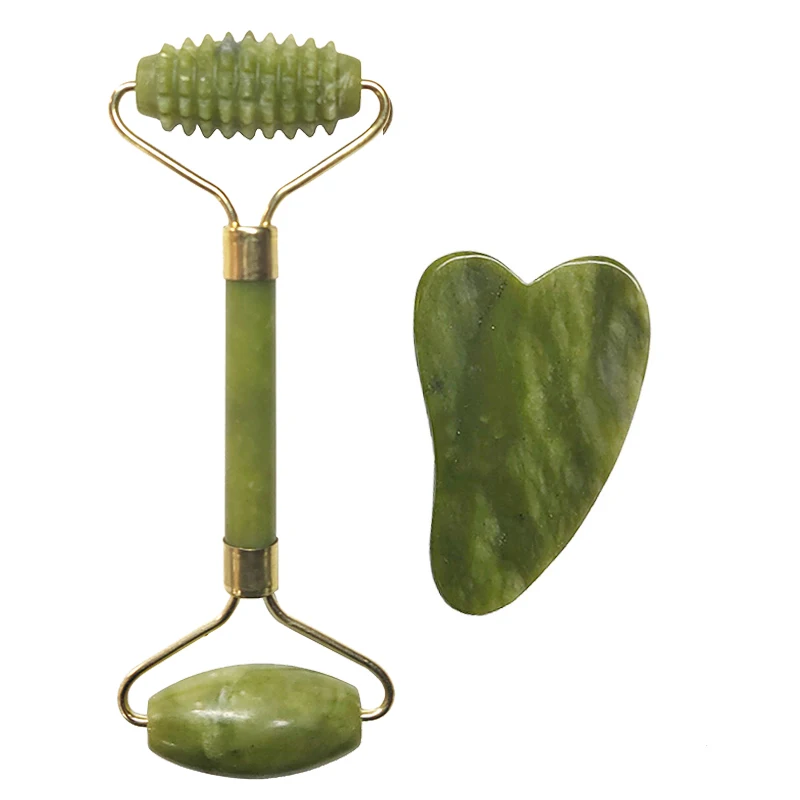 Jade Roller Set Facial Massager Natural Stone Face Roller Guasha Massage Board Gua Sha Scraper Jade Roller And Guasha Kit