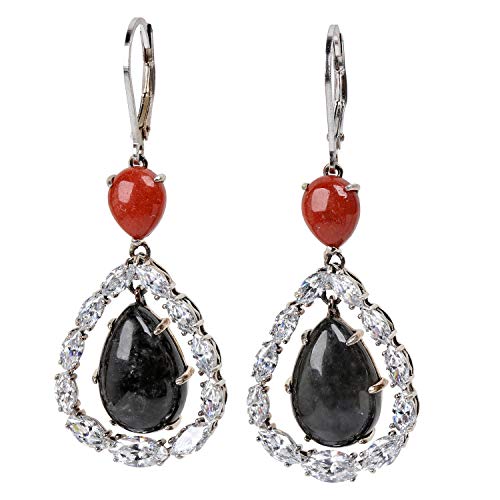 Jade of Yesteryear Orecchini pendenti in vero argento 925 ossidato effetto giada nero e arancione per donna