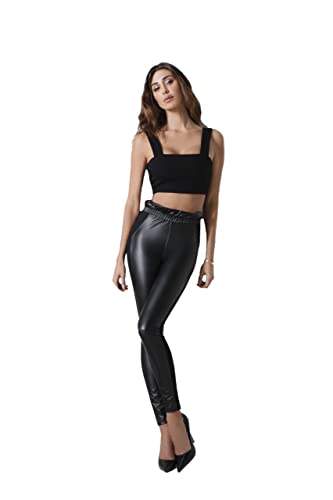JADEA Leggings Donna Simil Pelle e Cotone Nero 4229 (L/XL)