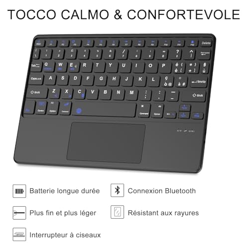 JADEMALL Tastiera Bluetooth Wireless per Tablet - iPad Tastiera con Touchpad e Batteria Ricaricabile Ultra Sottile Italiano QWERTY con Tasti IOS per iPad, Galaxy Tab, Xiaomi Pad, Huawei